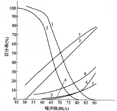 同樣由圖1得知,若以70dB(A)為噪聲允許值標(biāo)準(zhǔn),工人感到高煩惱的百分率將達(dá)到39%,對(duì)于集中精神感到有較高影響的百分率為12.4%,對(duì)工作速度和動(dòng)作準(zhǔn)確性影響仍不顯著,對(duì)語言通訊的干擾則屬于較高的等級(jí)。如按70dB(A)的限值來衡量現(xiàn)有潔凈廠房的噪聲,則多數(shù)可以滿足標(biāo)準(zhǔn)。