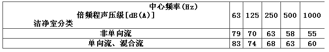 4.4.1 潔凈室內(nèi)的空態(tài)噪聲級(jí),非單向流潔凈室不應(yīng)大于60dB(A),單向流、混合流潔凈室不應(yīng)大于65dB(A)。