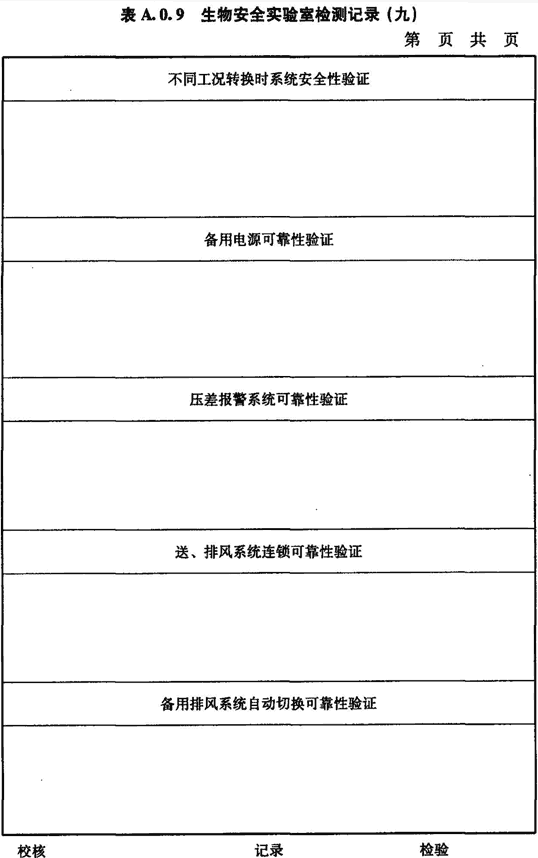 A.0.9 生物安全實驗室配電和自控系統(tǒng)的檢測應按表A.0.9進行記錄。