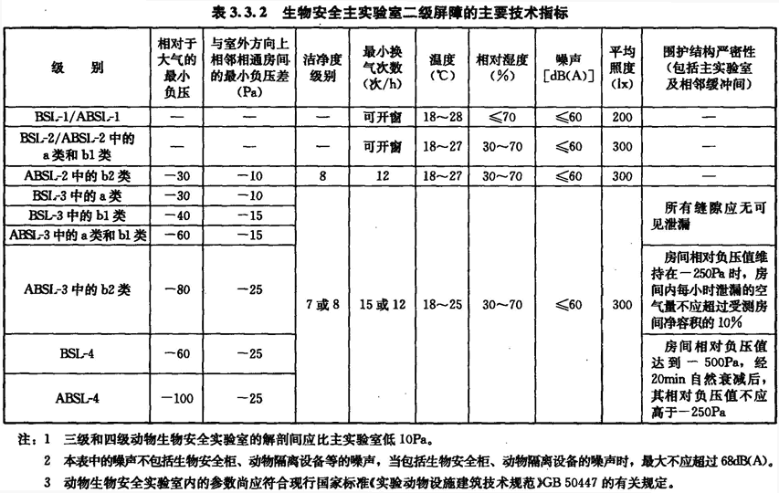 3.3 生物安全實驗室的技術(shù)指標(biāo)