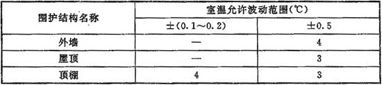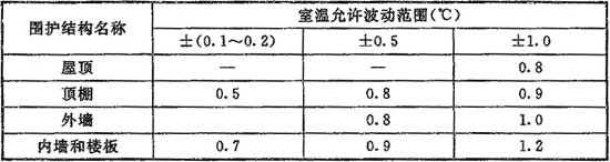 8.1.8 工藝性空氣調(diào)節(jié)區(qū),當室溫允許波動范圍小于或等于±0.5℃時,其圍護結(jié)構(gòu)的熱惰性指標D值不應(yīng)小于表8.1.8的規(guī)定。