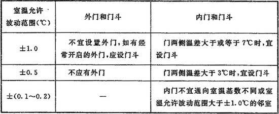 8.1.12 工藝性空氣調(diào)節(jié)區(qū)的門和門斗應(yīng)符合表8.1.12的規(guī)定。外門門縫應(yīng)嚴密,當門兩側(cè)的溫差大于或等于7℃時,應(yīng)采用保溫門。