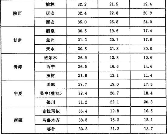 5 中國河流年均水溫的地區(qū)分布形勢大體與氣溫一致。河流年均水溫略高于當(dāng)?shù)啬昃鶜鉁?,差值一般?℃~2℃。但當(dāng)高山冰雪融水在河流補給中占主要地位的地區(qū)則相反,年均水溫低于氣溫1℃~2℃。中國河流水溫的年內(nèi)變化過程,大部分地區(qū)均為在春、夏增溫階段,水溫低于當(dāng)?shù)貧鉁?秋、冬降溫階段,水溫高于當(dāng)?shù)貧鉁?。采用蒸發(fā)冷卻空氣處理方式,冷卻水采用直流式地表水,可降低被處理空氣溫度,此時地表水即為天然冷源。
