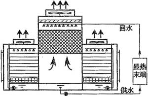 通常情況下,當(dāng)室外空氣的露點溫度低于14℃~15℃時,采用間接—直接蒸發(fā)冷卻方式,可以得到接近16℃的空調(diào)冷水作為空調(diào)系統(tǒng)的冷源。直接蒸發(fā)冷卻式系統(tǒng)包括水冷式蒸發(fā)冷卻、冷卻塔冷卻、蒸發(fā)式冷凝等。在西北部地區(qū)等于燥氣候區(qū),可通過蒸發(fā)冷卻方式直接提供用于空調(diào)系統(tǒng)的冷水,減少人工制冷的能耗,符合條件的地區(qū)推薦優(yōu)先推廣采用。
